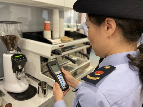 为确保爱心项目合规、健康持久地运转,5月28日上海市浦东新区商场监督管理局潍坊商场监管所所长、党支部书记蒋序勇,副所长朱炜婷一行四人来到瀛泰律所,现场观摩了 “爱心咖啡屋”的食物制造流程。朱炜婷副所长亲自用洁净度检测仪检测验证了食物用具的洁净度均彻底合格,并在冷冻冷藏的流程方面给予了必定和主张。她表明,活动咖啡吧制造的整一个流程操作标准,进程简练清晰,食物安全危险程度较低,契合相关安全原则标准要求。