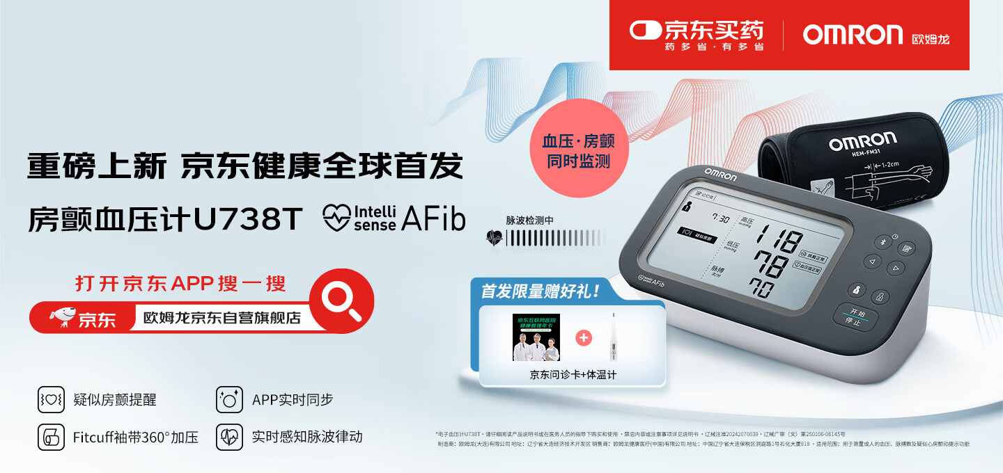 8月12日,欧姆龙旗下新品“智律波”房颤危险提示血压计在京东健康全球首发。顾客经过京东APP,查找“欧姆龙京东自营旗舰店”,进入主页店肆即可购买。